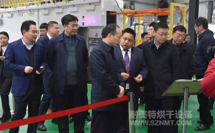 2020年12月9日上午,湖南省常德市委書記、市人大常委會主任周德睿,市委副書記、市長鄒文輝率領全市“開放強市 產業立市”流動現場會蒞臨湖南省耐美特智能烘干工業設備有限公司視察指導工作。縣委書記車世忠,縣委副書記、縣長周功表等一行陪同。
