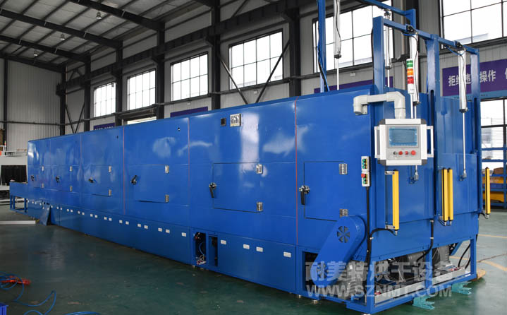 叉車輪子雙通道灌膠固化爐主要技術參數 1、內膽尺寸:左右雙通道,每條通道內寬700mm*內高500mm;加熱區長10000mm+保溫段700mm; 2、外形尺寸(約):總長12700mm*高1950mm*寬2100mm;輸送帶離地面高800mm±25mm; 3、總長12700mm*高1950mm*寬2100mm;輸送帶離地面高800mm±25mm; 4、溫度范圍:+55~+200℃; 5、三面循環運風,≥800立方/臺風機;